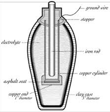 در نمونه دیگری، پژوهشگران از کوزه سفالی و آب‌لیمو به عنوان الکترولیت استفاده کردند تا واکنش الکتروشیمیایی میان مس و آهن فعال شود. چهار پیل ساخته‌شده به این روش به صورت سری به هم وصل شدند و موفق به تولید ۴ ولت برق شدند. این مقدار انرژی برای آبکاری یک بج (Badge) کوچک یا سوزن‌هایی مشابه وسایل طب سوزنی کافی بود، اما ولتاژ آن برای ایجاد شوک الکتریکی در بدن انسان ناکافی به شمار می‌رفت.